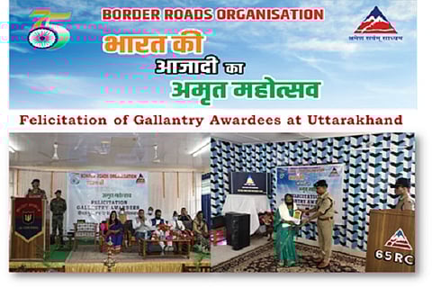On August 07, BRO felicitated the Gallantry Award winners and War Heroes at Pipalkoti and Pithoragarh in Uttarakhand and Chandmari in Sikkim. In a ceremony organised by Project Hirak of BRO at Pithoragarh, tokens of appreciation were awarded to the next of kin of Shaurya Chakra awardees – EEM Prem Singh, Naik Chandra Singh, Driver Ram Singh and DME Damar Bahadur. In a separate ceremony at Pipalkoti, Project Shivalik of BRO felicitated the next of kin of Major Preetam Singh Kunwar, Kirti Chakra; Lance Naik Raghubeer Singh, Shaurya Chakra (Posthumous) and Naib Subedar Surendra Singh, Shaurya Chakra.