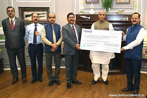 BDL's Chairman & Managing Director (CMD) Commodore Siddharth Mishra (Retd) presented the cheque for Rs 92.008 crore, being the interim dividend pertaining to the government's shareholding in BDL (74.93 percent) to Union Defence Minister Rajnath Singh at New Delhi on Monday.