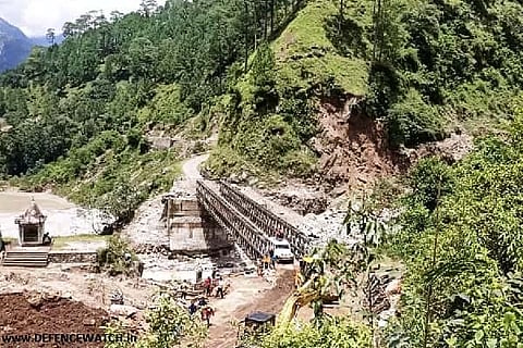 Pithoragarh/ New Delhi: (Defence News) Border Roads Organisation (BRO) has constructed a 180-feet bailey bridge in Jauljibi sector of Pithoragarh district, Uttarakhand in less than three weeks despite frequent landslides and heavy rains. In effect, out of the 20 days that it took BRO to build the bailey bridge, 11 days were spent in taking logistics to the spot because of frequent landslides. So effectively BRO constructed the bridge in a record 9 days time. The 50-metre span concrete bridge was completely washed out on July 27 when cloudburst hit the area and the nallas and rivers were flooded. This caused a mudflow of tremendous force. There were many casualties also due to landslides and the road communication was broken.