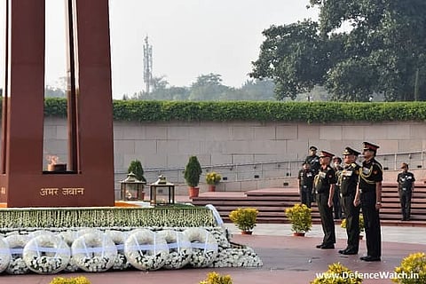 As part of the Infantry Day celebrations, a 'Wreath Laying' ceremony was held at the National War Memorial to honour the fallen heroes of the Infantry, who made the supreme sacrifice on various battlefields in service of the nation. Chief of Defence Staff General Bipin Rawat, Chief of Army Staff General MM Naravane, Colonels of the Infantry Regiments and other senior officers laid wreaths on this solemn occasion. Three decorated veterans of Indo Pak War 1971, namely Major RK Arora, VrC (Retired), Subedar (Hony Lt) Nand Ram, VrC (Retired) and Grenadier (HonyNk) Amrit, VrC (Retired) also laid wreaths on behalf of veterans of the Infantry.