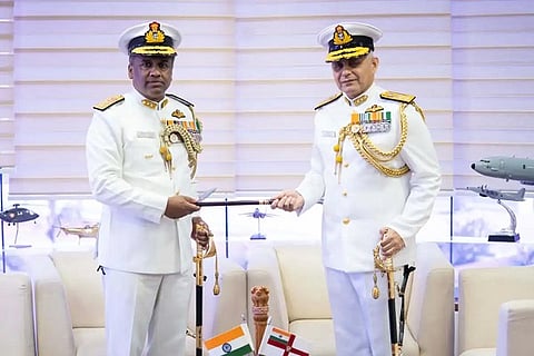 New Delhi: Rear Admiral Vikram Menon today took over duties of Flag Officer Commanding Goa Area (FOGA) and Flag Officer Naval Aviation (FONA) from Rear Admiral Philipose G Pynumootil, AVSM, NM, who retired on superannuation after a career spanning over 36 years in service.