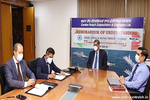 The MoU has been signed by GRSE's Director (Personnel) Cmde PR Hari, IN (Retd). Under this MoU, the two entities will collaborate and engage to offer high-end surface ships based on sea proven Gowind® design developed for the export market. Having built over 100 warships for Indian and foreign naval forces, GRSE will work closely with French & Indian industries.