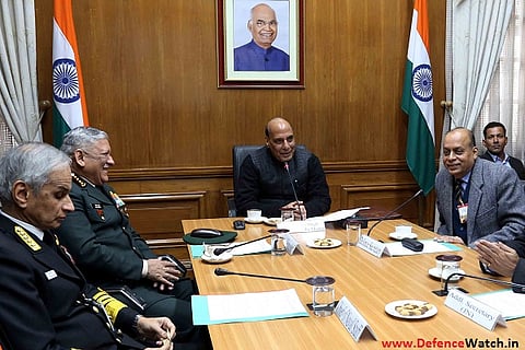 Raksha Mantri @rajnathsingh launches website on the grant of permission for aerial photography/remote sensing survey of defence land, today. Also seen are Defence Secy. Dr @drajaykumar_ias, CDS Gen Bipin Rawat, CNS Adm Karambir Singh, CAS ACM RKS Bhadauria & COAS Gen MM Naravane, Principal Spokesperson, Ministry of Defence, said in a tweet.