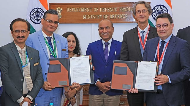 New Delhi: Bharat Electronics Limited (BEL) and France's Safran Electronics and Defence (SED) have signed a Joint Venture Cooperation Agreement (JVCA) for local production of the Highly Agile Modular Munition Extended Range (HAMMER) Smart Precision Guided Air-to-Ground Weapon. The JVCA was signed by BEL CMD Manoj Jain and SED Executive Vice President Alexandre Ziegler in the presence of Secretary (Defence Production) Sanjeev Kumar (IAS) and Safran CEO Olivier Andries at an event held here in New Delhi on Monday, November 24.