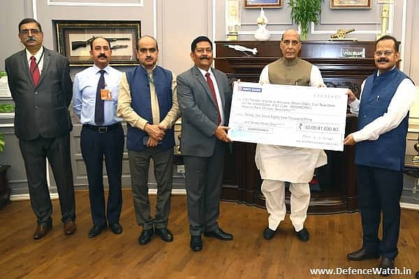 BDL's Chairman & Managing Director (CMD) Commodore Siddharth Mishra (Retd) presented the cheque for Rs 92.008 crore, being the interim dividend pertaining to the government's shareholding in BDL (74.93 percent) to Union Defence Minister Rajnath Singh at New Delhi on Monday.