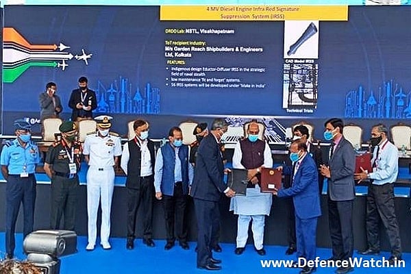 The 10 MoUs include one for 'Transfer of Technology' for Diesel Engine Infrared Signature Suppression System with NSTL, Vishakhapatnam, one MoU with Sterling PlanB Energy Solutions, Vancouver, Canada for Energy Storage Solutions for electric or hybrid propulsion in ships and another with GE Power for development of electric or hybrid propulsion for naval platforms. In pursuit of the export market, an MoU has been signed with ASSL, Bangladesh for cooperation in shipbuilding.
