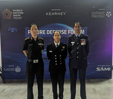Riyadh: The World Defence Show (WDS) 2024, currently being held in Riyadh, witnessed Tri-Service women representation, a testament to Prime Minister Narendra Modi-led Government’s vision of leveraging Nari Shakti across domains. Squadron Leader Bhawana Kanth, Colonel Ponung Doming and Lieutenant Commander Annu Prakash represented the Armed Forces in the various seminars of the WDS 2024 especially in the International Women in Defence themed events.