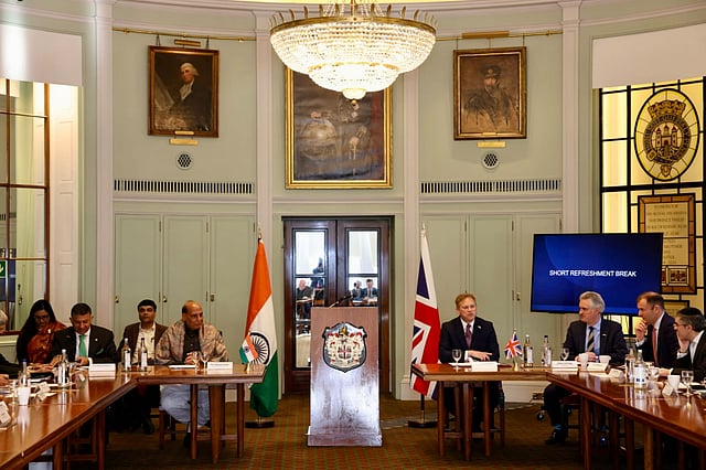 London: On the second and final day of his visit to the United Kingdom, Defence minister Rajnath Singh interacted with top UK Defence industry leaders and CEOs at an event in Trinity House, London on January 10, 2024. The UK-India Defence Industry CEOs Roundtable, co-chaired by Singh with his UK counterpart Mr Grant Shapps was attended by a large number of CEOs from UK defence industry; UK MoD officials; Chair, UK India Business Council; and CII India representatives.