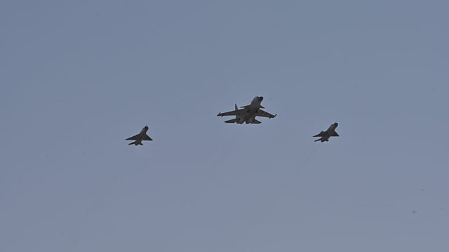 Jaipur: Marking the end of an era the MiG-21 Bison aircraft were seen for the last time in the skies of Uttarlai in Barmer district, Rajsthan on Oct 30, 2023.