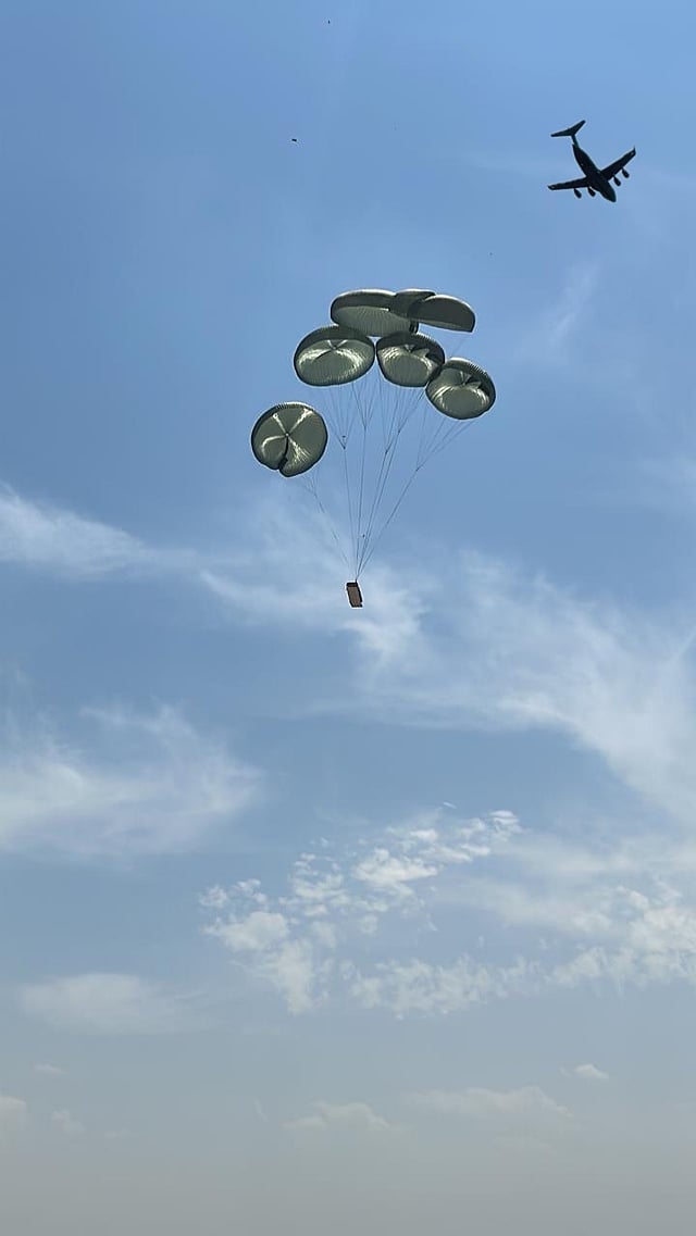 New Delhi: In a joint demonstration of seamless operational collaboration, a C-17 transport aircraft of the Indian Air Force airdropped an indigenously developed heavy platform that can carry a maximum load of over 22 tons.