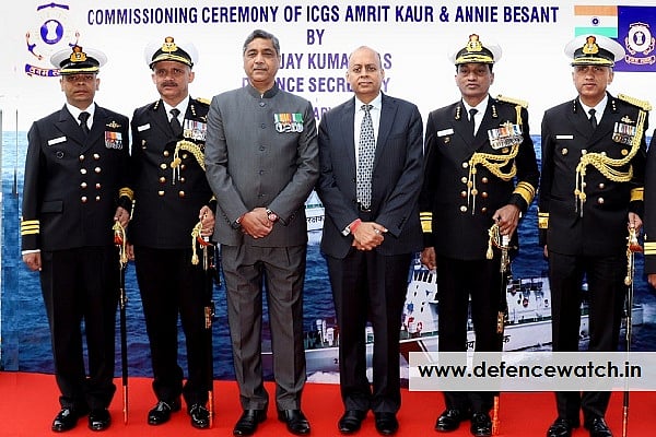 Kolkata: The journey that started in 1961 with the delivery of INS Ajay, is now moving towards a splendid celebration of adding yet another milestone on GRSE's cap with the commissioning of FPVs "ICGS Amrit Kaur" and "ICGS Annie Besant" built by India's leading shipyard company Garden Reach Shipbuilders and Engineers Limited (GRSE). The second and third of the five Fast Patrol Vessels (FPVs) were commissioned on Sunday at Kolkata Port Trust by Dr Ajay Kumar, IAS, Defence Secretary, GoI. The ceremony was attended by Rear Admiral VK Saxena, IN(Retd), Chairman & Managing Director, GRSE, Cmde Sanjeev Nayyar, IN(Retd), Director (Shipbuilding), and other senior officials of the Indian Coast Guard and GRSE.