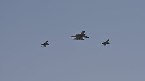 Jaipur: Marking the end of an era the MiG-21 Bison aircraft were seen for the last time in the skies of Uttarlai in Barmer district, Rajsthan on Oct 30, 2023.