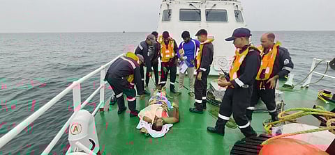 On receipt of information, ICG Ship Samudra Paheredar which was on patrol was immediately diverted for assistance. Meanwhile, ICG Station Kakinada was alerted to arrange necessary medical assistance to the patient on arrival at Kakinada.