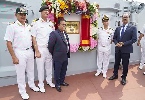 New Delhi: The Defence PSU Mazagon Dock Shipbuilders Limited (MDL) has delivered the third Stealth Destroyer of Project 15B Class Guided Missile Destroyer - Yard 12706 (IMPHAL) -to the Indian Navy. The Acceptance Document was signed by Chairman & Managing Director, MDL Sanjeev Singhal and RAdm Sanjay Sadhu, AVSM, NM, CSO (Tech) at MDL in the presence of Commanding Officer (Designate) Capt K K Choudhury, MDL Directors, WOT(MB) and Navy personnel today.