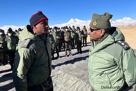 The Army said in a tweet, "Gen Manoj Pande #COAS visited forward areas in #Ladakh to review the operational preparedness. #COAS interacted with the troops & complimented them for their steadfastness & high morale."