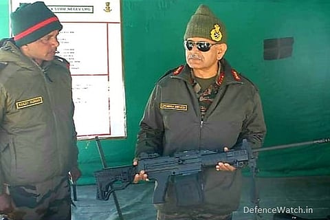 The Northern Command of the Indian Army tweeted three pictures of Lt. General Dwivedi examining a newly inducted field gun, a 51mm Light Machine Gun and an unmanned aerial vehicle (UAV).